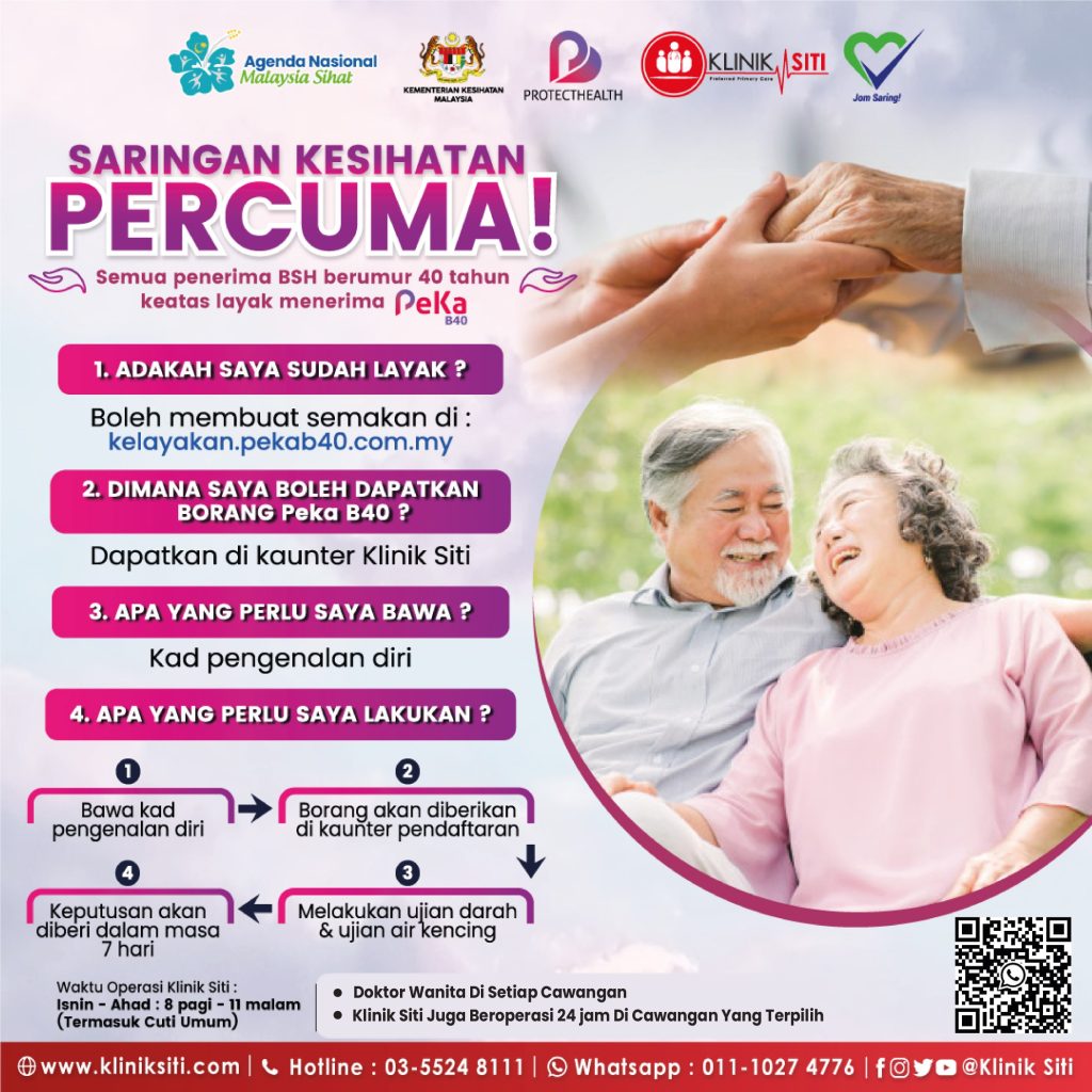 Klinik Siti menawarkan rawatan dan pemeriksaan kesihatan bagi lelaki dan wanita termasuk kanak-kanak, orang dewasa dan warga emas.