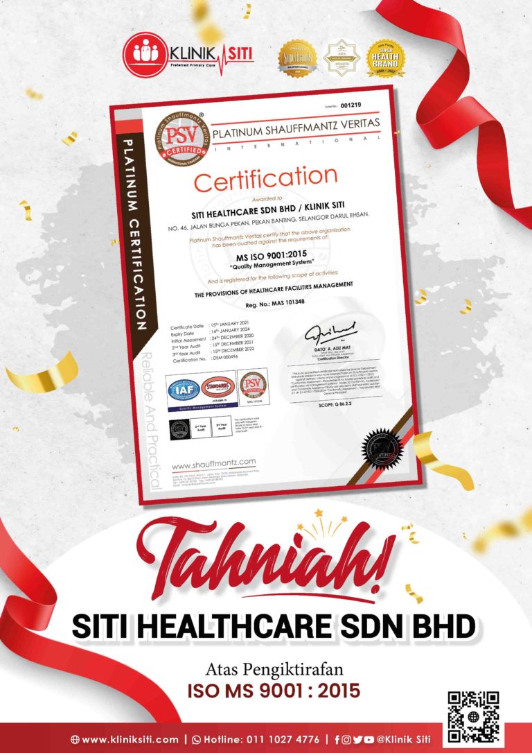Klinik Siti diuruskan oleh Siti Healthcare Sdn. Bhd.